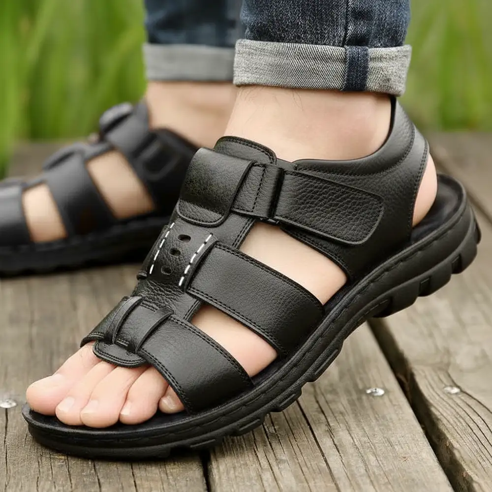 Sandalias en cuero negro 100%